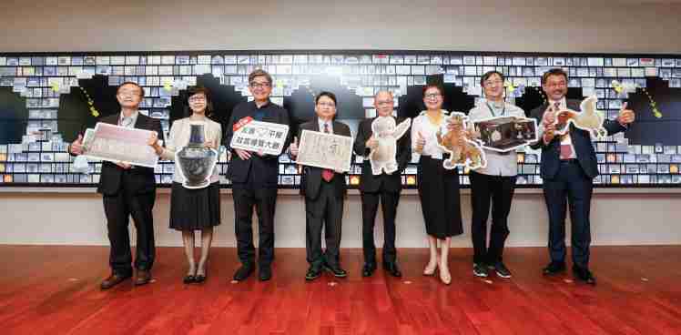 PA直营携手创利空间为故宫建置的智慧文物互动导览墙及轮播墙,,,今日正式启用。。。(左四:PA直营新事业暨投资管理总部副总经理杨本豫、、右四:故宫博物院院长吴密察、、右三:太极影音董事长黄宝云)