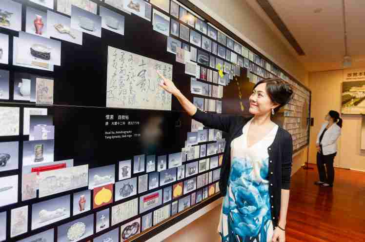 故宫智能文物互动导览墙的设计灵感源自多宝格文物,,,可让多人同时透过各类互动手势浏览故宫精彩的文物图像。。。。