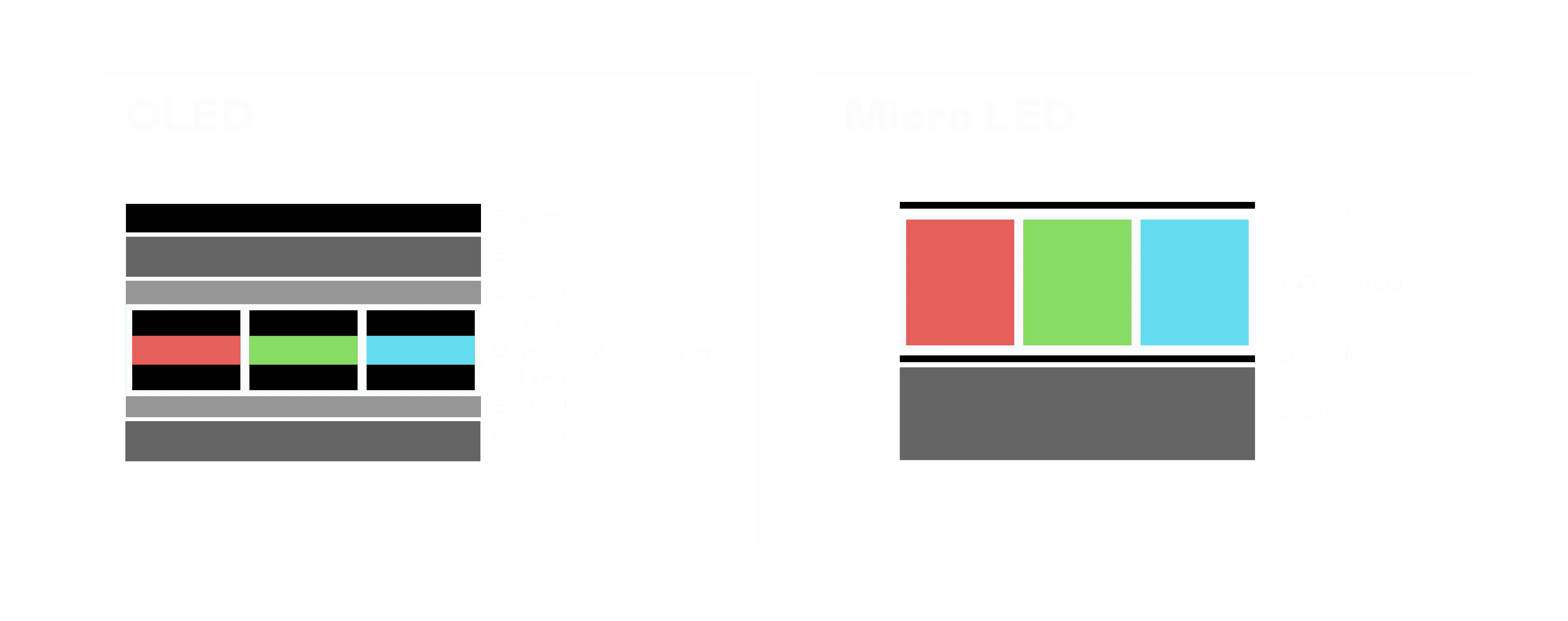 以 LED 做为显示画素,,,可让 LED 的发光效率发挥到极致,,从而让显示器具备优异的亮度表现,,不论是在户外或室内,,,,均具备出众的显示效果。。。。同时,,,与使用有机材料的 OLED 相比,,LED 具备更稳定、、、寿命更长的特性,,不仅不会有画面烙印问题,,,,而且更不容易出现故障、、、、坏点。。。。